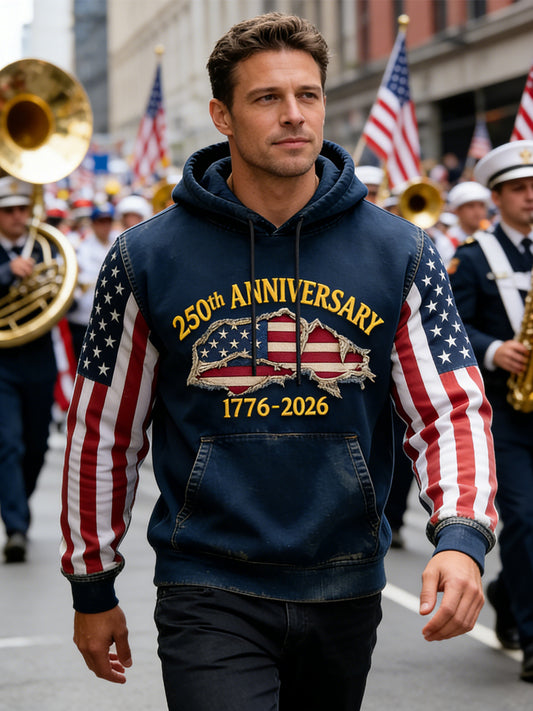 Men's Vintage Camouflage US Flag Print Casual Hoodie