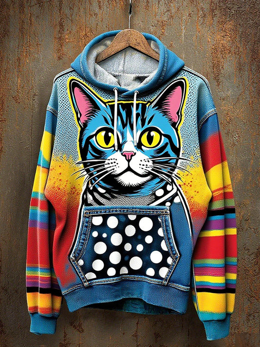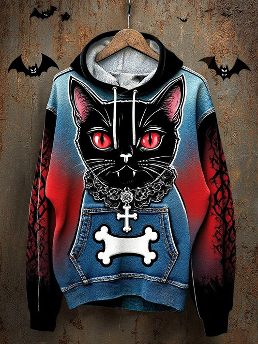 Christmas Cute Cat Printed Long Sleeve Casual Sweatshirt