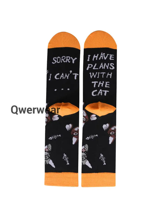 Unisex Cat Print Color Block Thermal Stockings