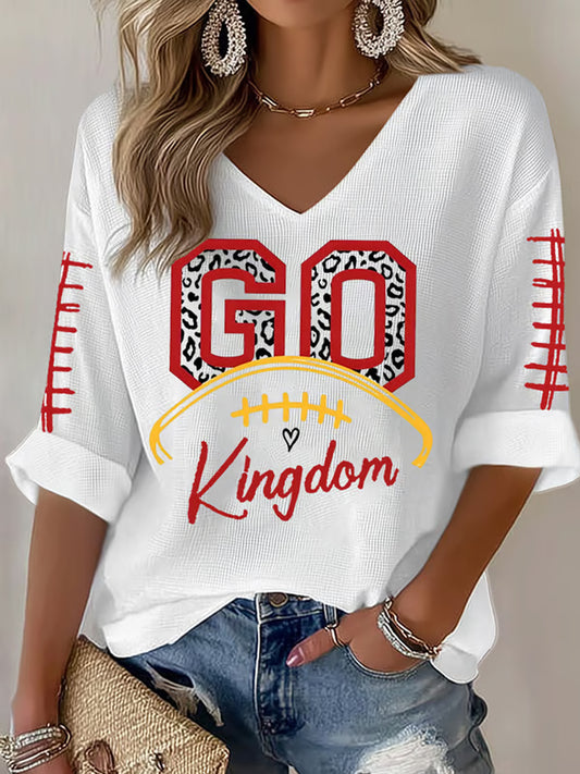 Women's Go Red Kingdom Football Fans Lovers Gameday Casual V-Neck Top