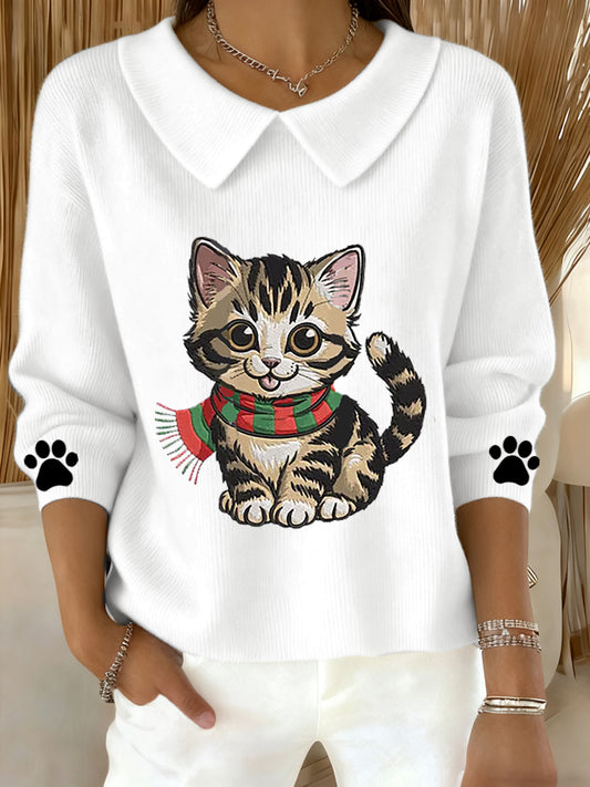 Women's Cute Cat Print Cat Lovers Casual Baby Doll Collar Top