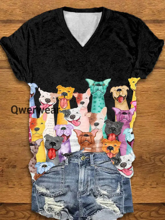 Women's Colorful Dogs Print short-sleeved T-shirt