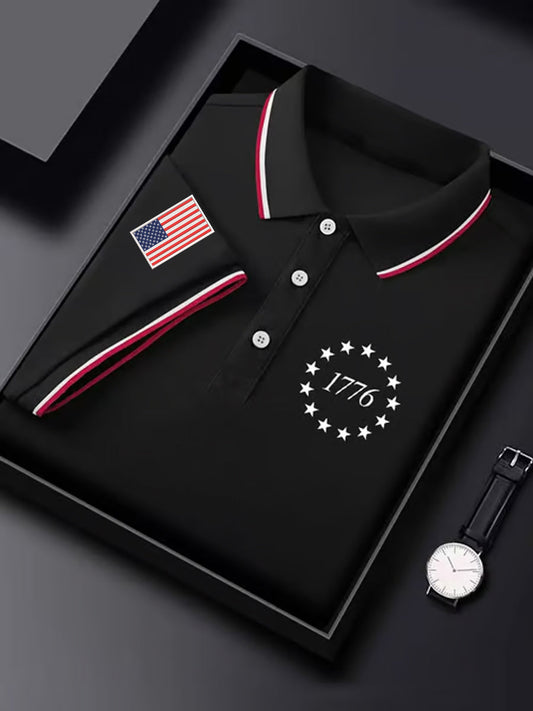 Men's Independence Day USA Flag 1776 Print Casual Top