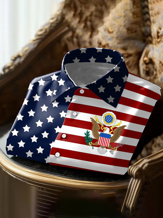 Men's Vintage American Flag Eagle Casual Shirt