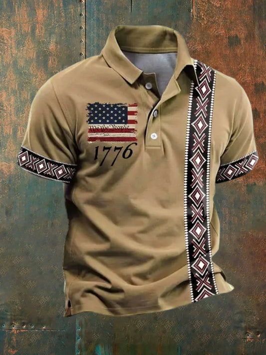 Men's Retro Independence Day Art Print Casual Short Sleeve Top