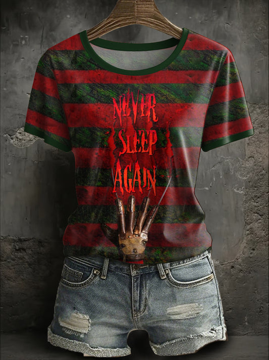 • Women's Halloween Horror Never Sleep Again Printed T-shirt