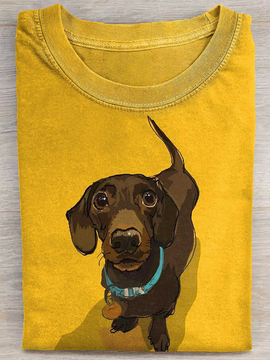 Women's Vintage Patchwork Dog Art Print Casual Sweatshirt