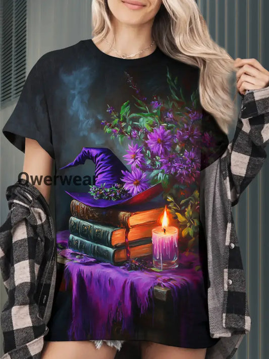 Magic Book Witch Art Print Unisex Round Neck Short Sleeve Casual T-Shirt