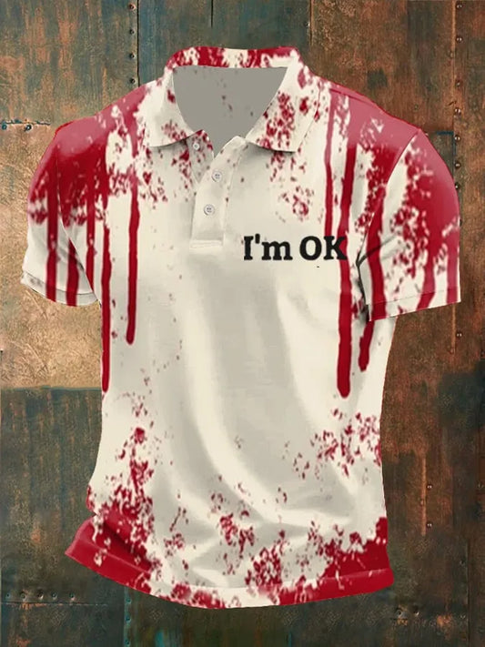 Men's "I'm Fine" Bloody Print Polo Shirt