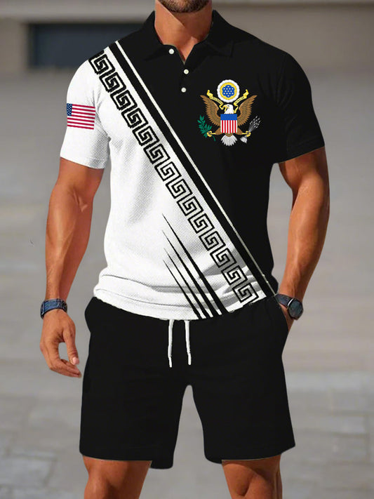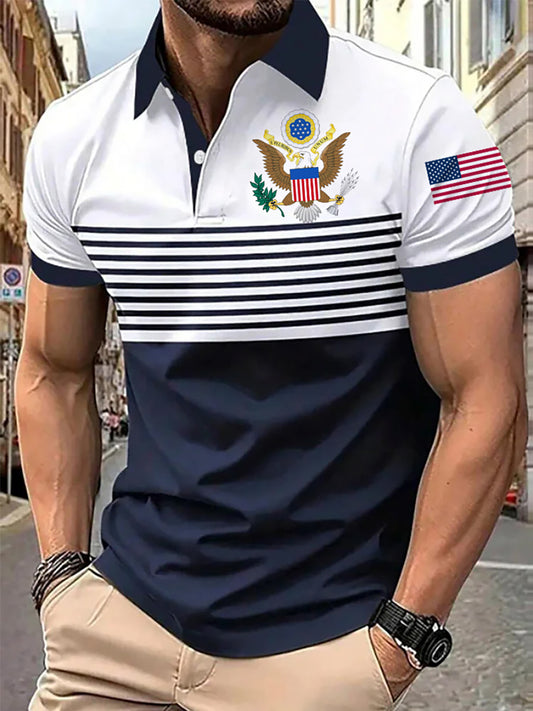 Men's Retro Independence Day Art Print Casual Short Sleeve Top