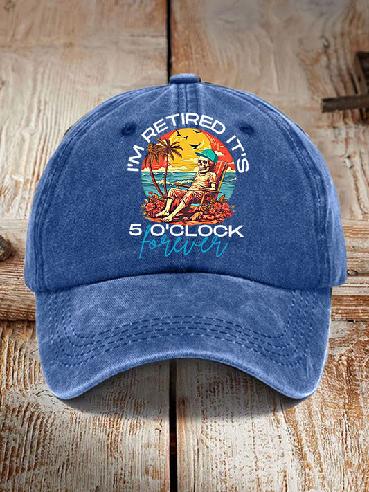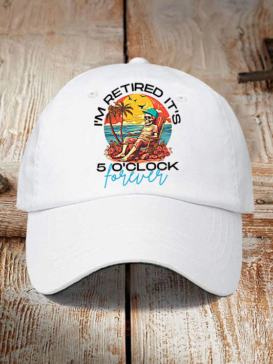 Unisex Funny I'm Retired It's 5 O'Clock Forever Print Hat