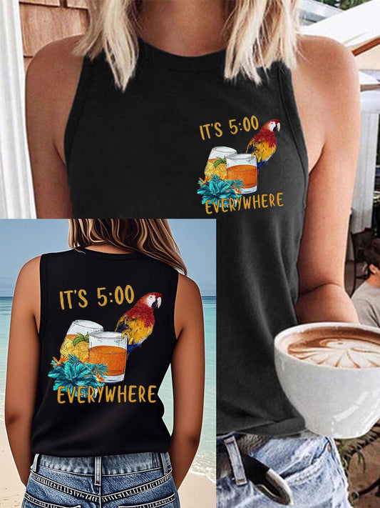 Women's I'm Retired It's 5 O'clock Everywhere Parrot Print Casual Sleeveless T-Shirt