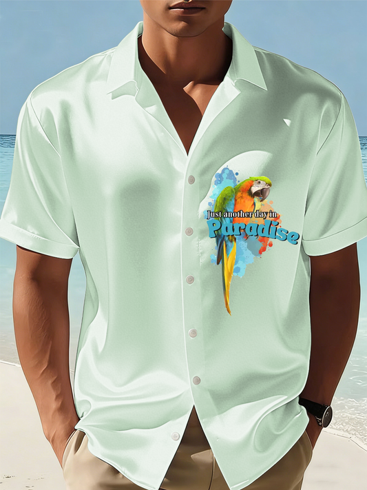 Men's Parrot Print Casual Waffle Shirt