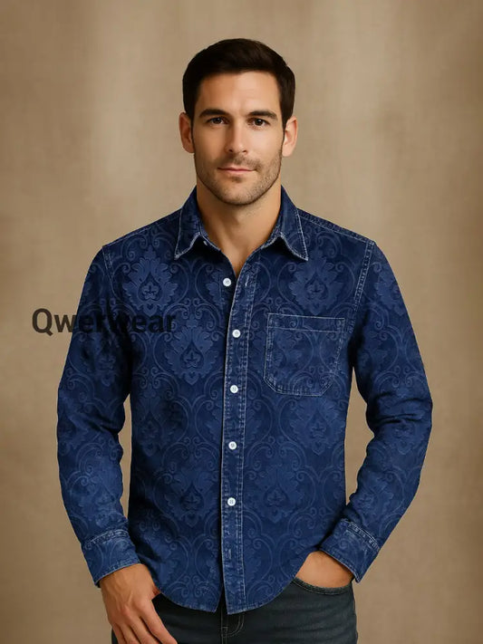 Mens Western Vintage Print Casual Long Sleeve Shirt
