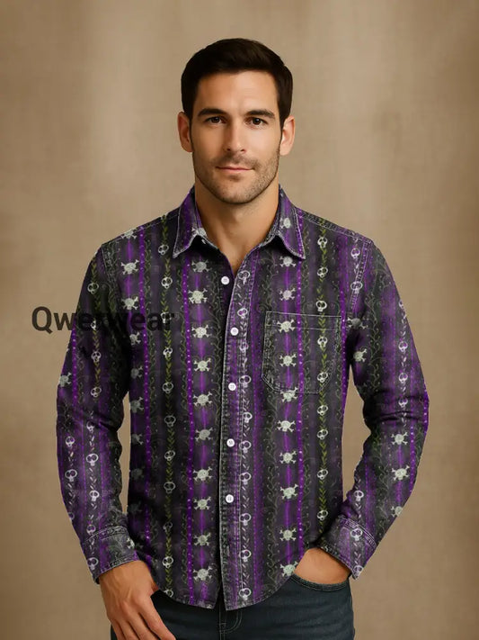 Men's Vintage Punk Gothic Death Vine Skulls Abstract Print Casual Long Sleeve Shirt