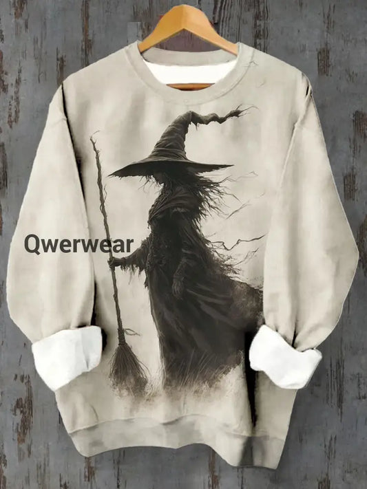 Unisex Witch Art Print Crew Neck Casual Sweatshirt