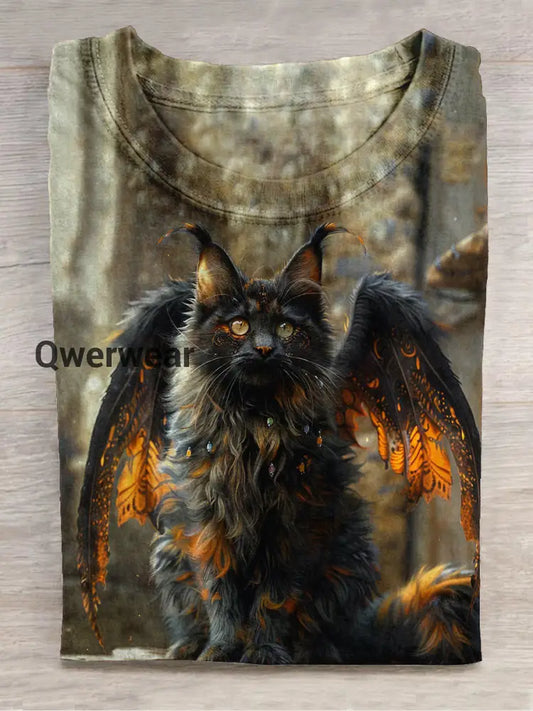 Black Cat Art Print Unisex Crew Neck Short Sleeve Casual T-Shirt