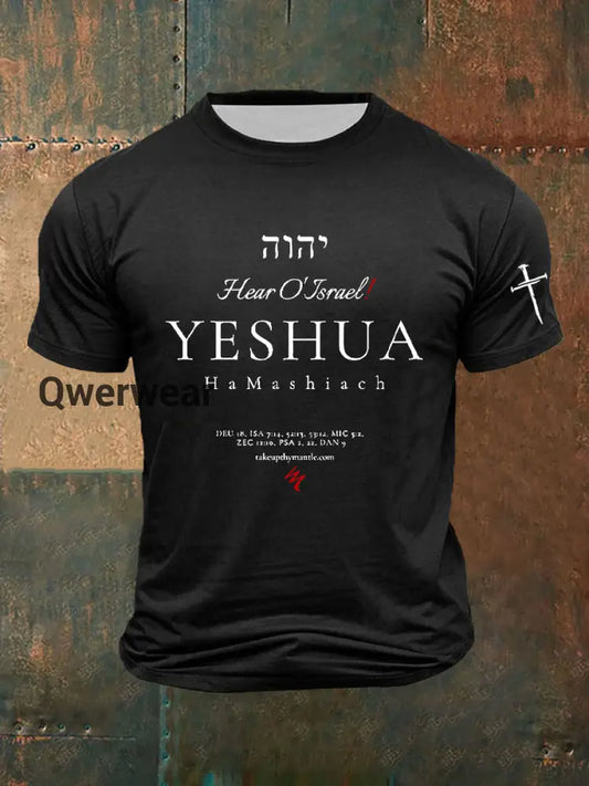 Men's Bible Verse “ Yeshua King OF Kings Lord Of Lords” Printed Zip Short Sleeve T-Shirt