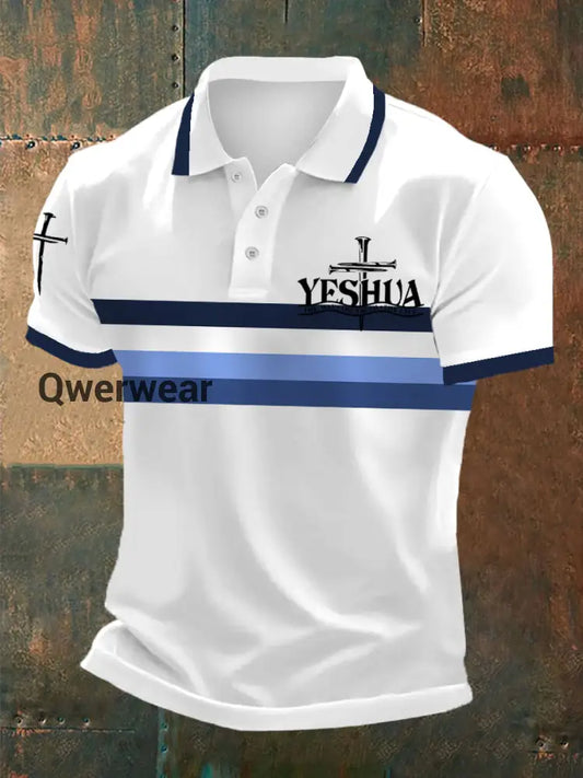 Men's Yeshua The Way The Truth The Life Stripes Print Casual Polo