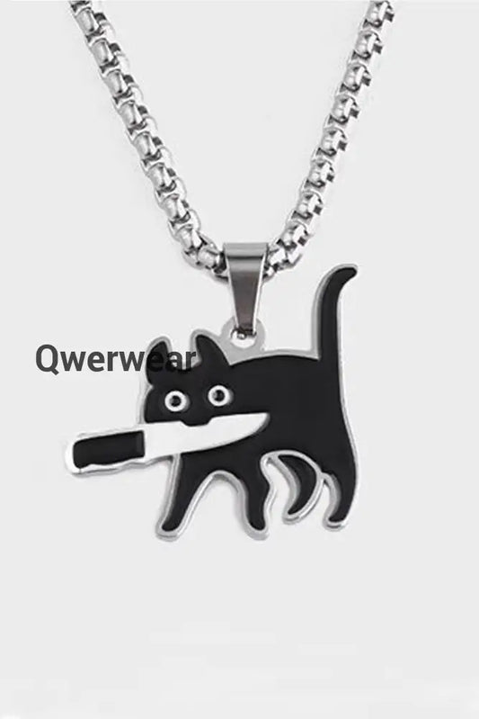Cute Cartoon Knife Cat Pendant Necklace