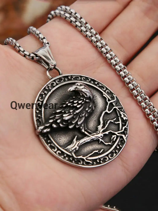 Stainless Steel Men's Necklace Crow Pendant