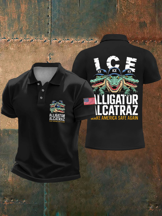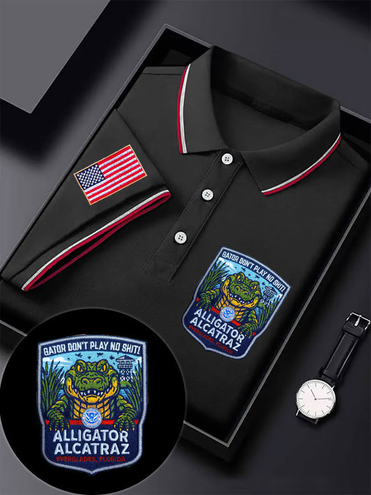 Men's Retro Alligator Alcatraz Funny Florida Everglades Dark Humor Vests Polo Shirt