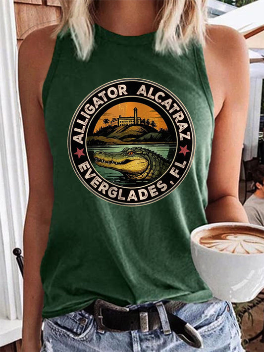 Women's Retro Alligator Alcatraz Funny Florida Everglades Dark Humor Vest