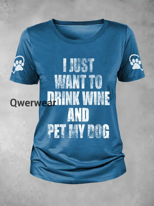 Women's I Just Want to Drink Wine and Pet My Dog T-shirt-TS-AF-65