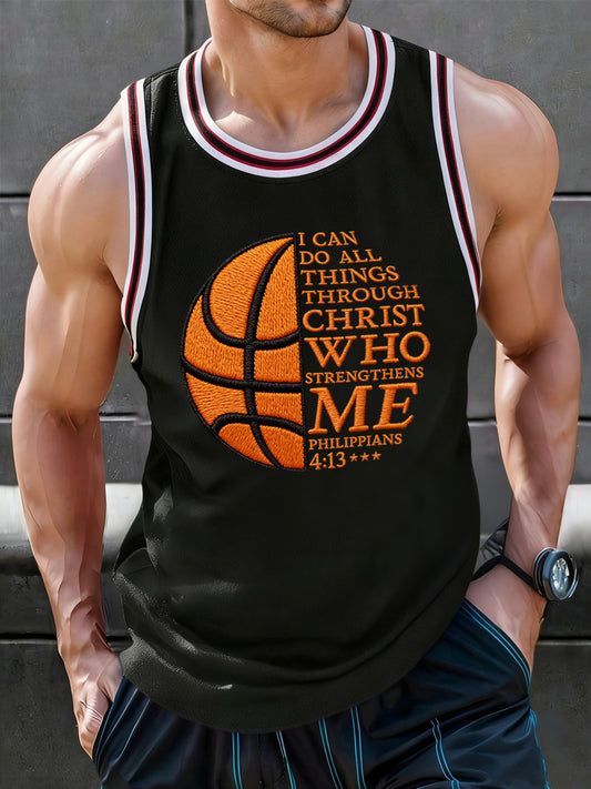 Men's I Can Do All Things Through Christ Basketball Print Basketball Lovers Gameday Casual Vests