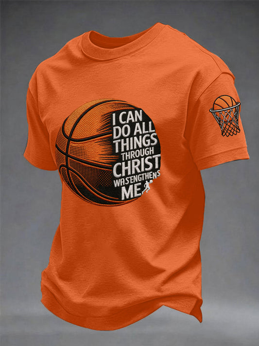 Men's I Can Do All Things Through Christ Basketball Print Basketball Lovers Gameday Casual Tee