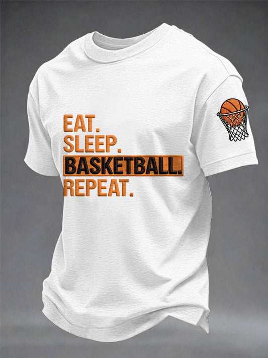 Men's Eat Sleep Basketball Repeat Print Basketball Lovers Gameday Casual Tee