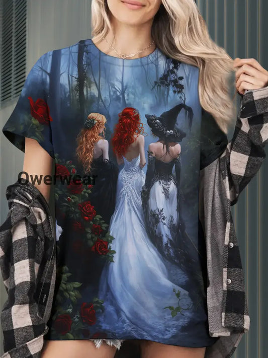Witch Sisters Art Print Unisex Round Neck Short Sleeve Casual T-Shirt