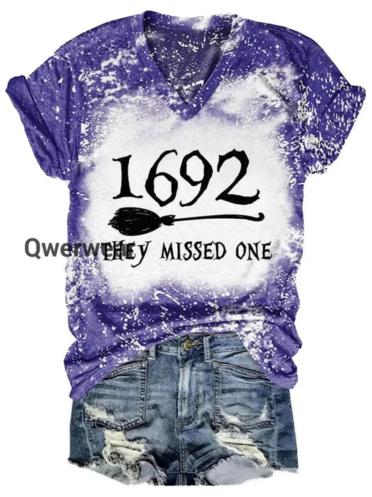 Women's 1692 Witch Print Tie-Dye V-Neck T-Shirt