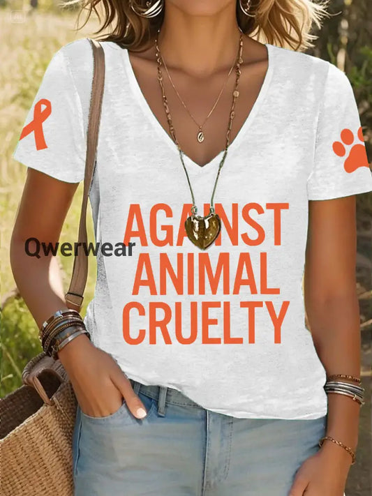 Women's Prevention of Cruelty to Animals Month Against animal cruelty V-neck T-shirt