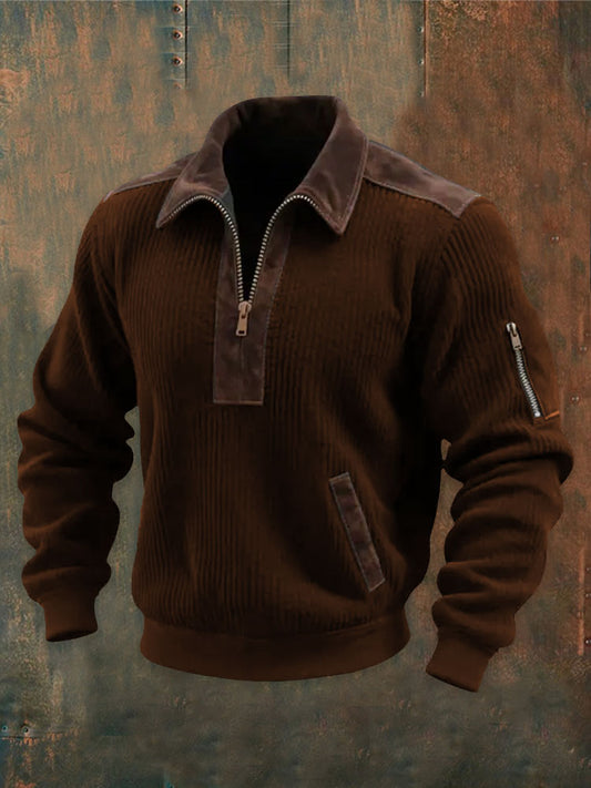 Men's Retro Western Floral Print Casual Zipper Sweatshirt