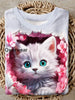 3D Floral Cat Print Short Sleeve Top