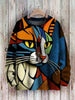 Abstract Art Cat Multicolor Print Casual Pullover Knitted Sweater