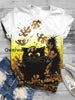 Autumn Black Cat Leaf Print Crew Neck T-shirt