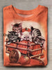 Autumn Pumpkin Cat Print Casual Short Sleeve Top