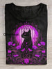 Black Cat and Floral Unisex Crew Neck Short Sleeve Casual T-Shirt