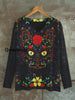 Black Cat Art Print Unisex V-Neck Long Sleeve T-Shirt