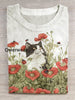 Cat Art Print Round Neck Short Sleeve Casual T-Shirt