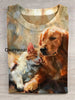 Cat Art Print Round Neck Short Sleeve Casual T-Shirt