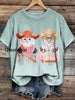 Cat Valentine's Day Western Denim Sisters Brothers Printed Casual T-shirt