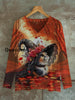 Cat Witch Art Print Unisex V-Neck Long Sleeve Casual T-Shirt