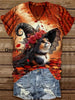 Cat Witch Art Print Unisex V-Neck Short Sleeve Casual T-Shirt