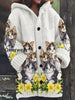 Cute Cat Print Button Thick Long Hooded Cardigan Sweater