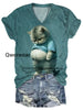 Funny Cat Print V-Neck Short Sleeve T-Shirt