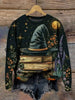 Magic Witch Magic Hat Art Print Round Neck Long Sleeve Casual Sweatshirt