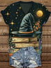 Magic Witch Magic Hat Art Print V-neck Short Sleeve Casual T-Shirt